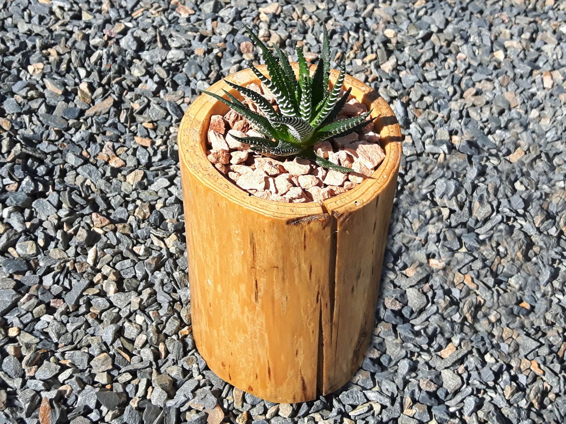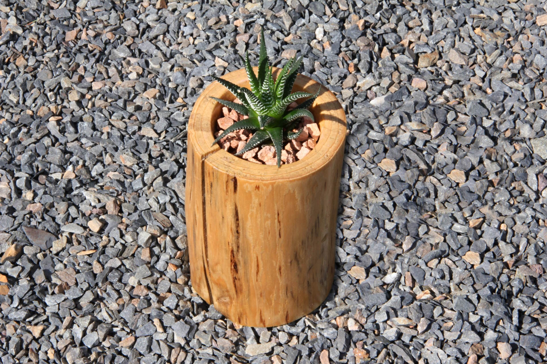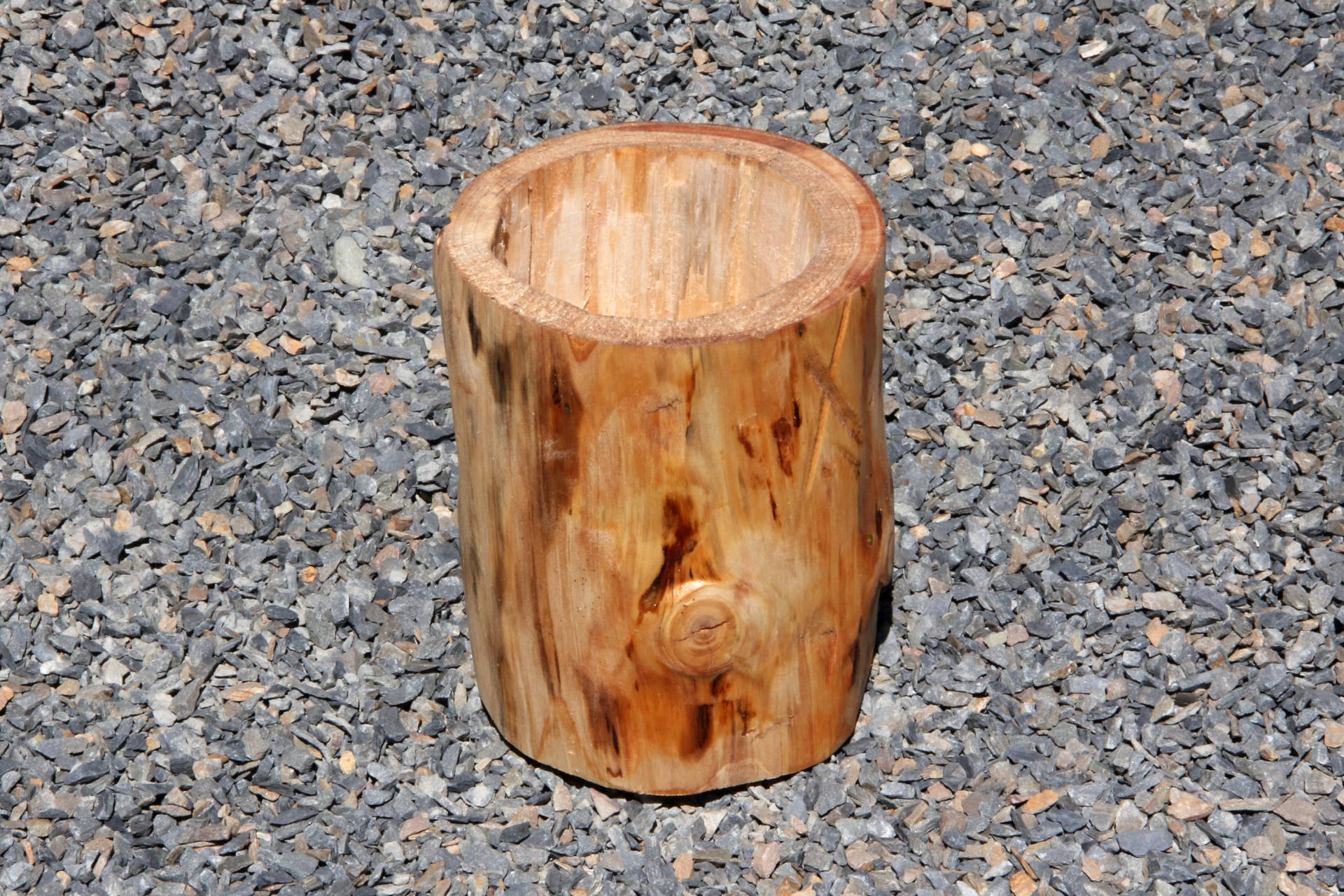Dřevěný, ručně dlabaný květináč bez kůry.