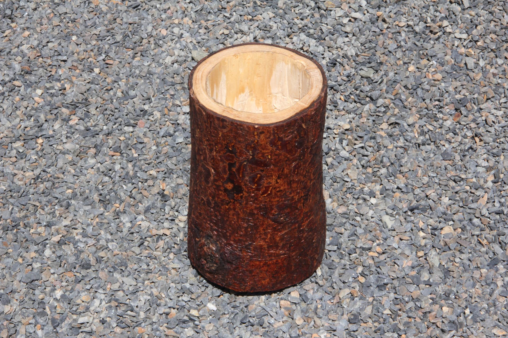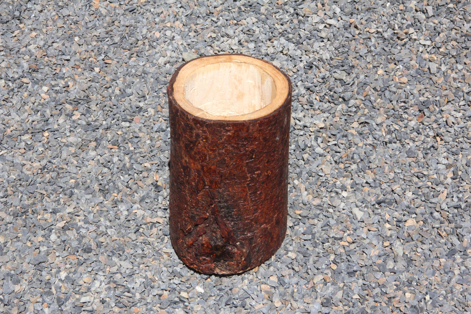 Dřevěný, ručně dlabaný květináč bez kůry.