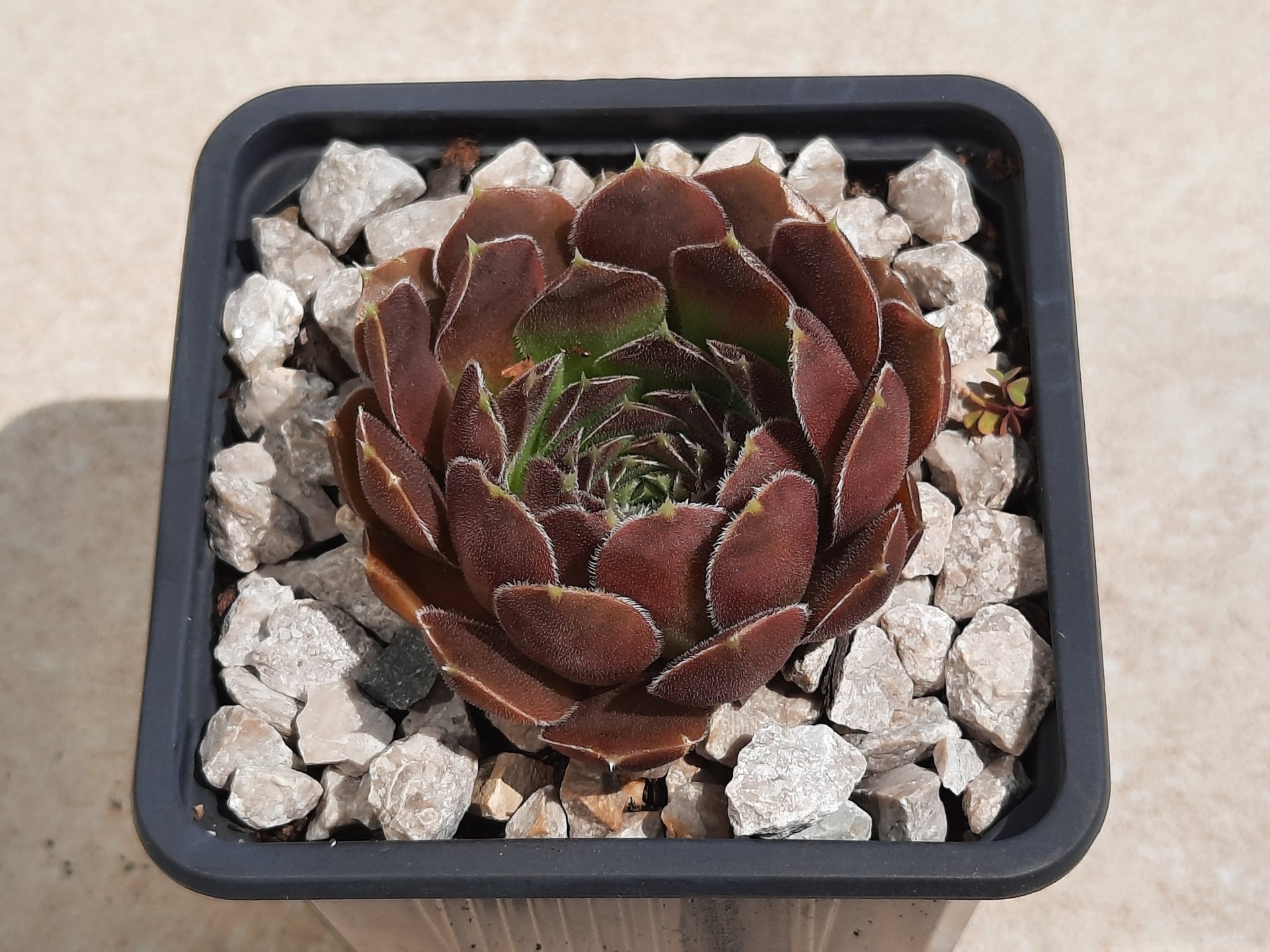 Drobná, bohatě odnožující, plně mrazuvzdorná, původem z jihozápadních Alp. Jovibarba allionii…