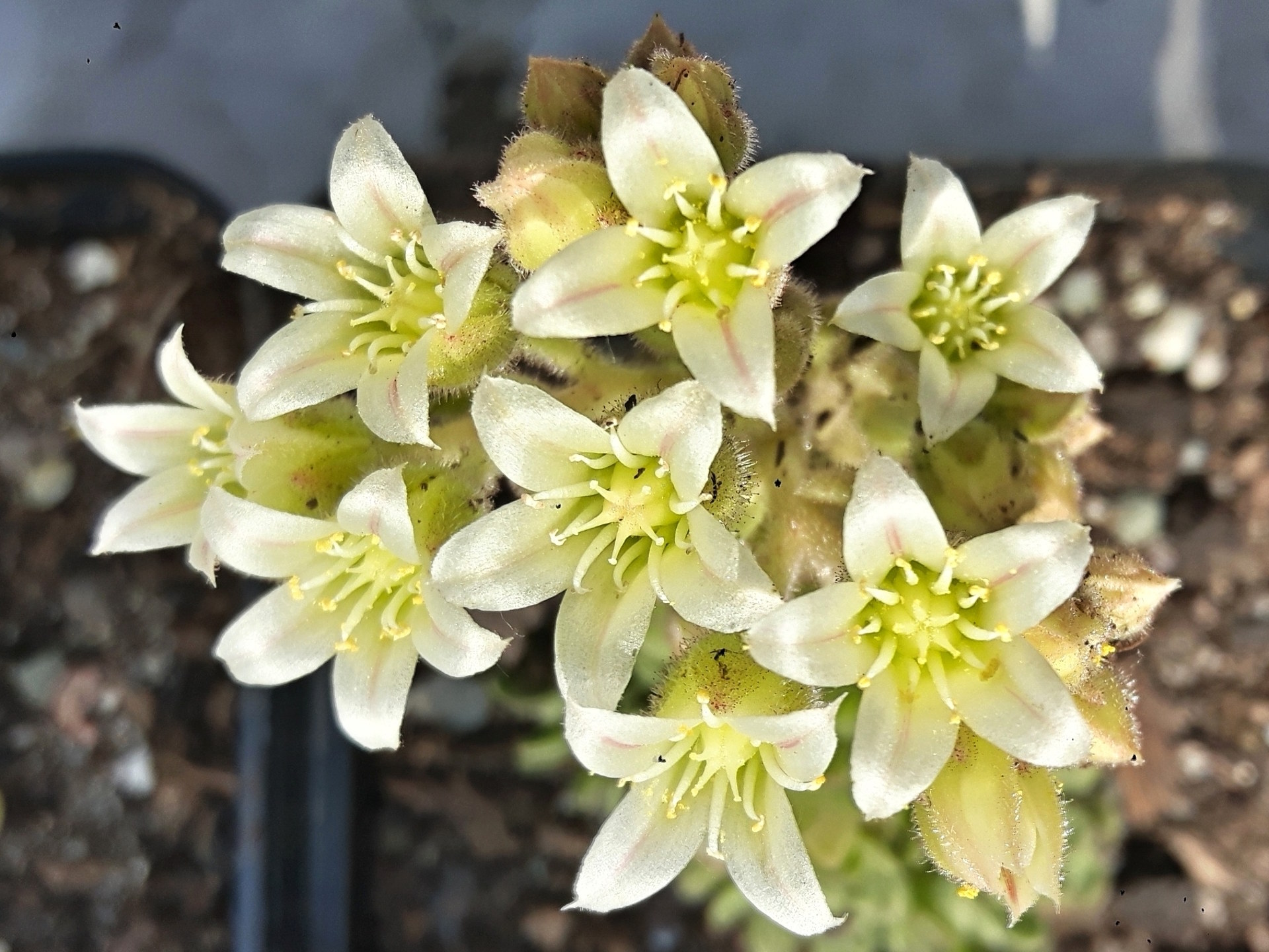 Skalnička Rosularia aizoon (Cymbálek) vytváří přízemní polštáře stejně jako netřesky, kterým je podobná. Rosularia aizoon pochází z Kavkazu a je mrazuvzdorná.